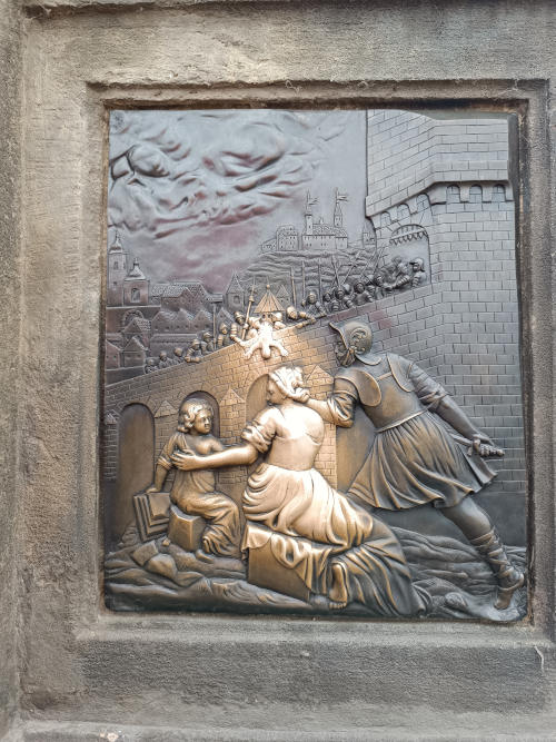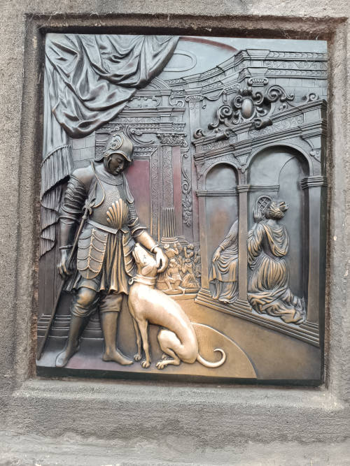 El puente también es famoso por sus 30 estatuas, entre las que se encuentra la de San Juan Nepomuceno, que reconocerás por tener un perrito a los pies. Juan Nepomuceno era el vicario general del arzobispo de Praga en 1393 y, según cuenta la historia, recibió a la reina Sofía en confesión y se negó a revelar sus pecados al rey Wenceslao. Furioso, el monarca mandó que fuera torturado y arrojado desde el puente. En el lugar donde fue arrojado hay un escudo con una cruz, y hay quien dice que si colocas la mano en el escudo se hará realidad el deseo que pidas. Otros dicen que hay que tocar la imagen del santo siendo arrojado al río, en una placa debajo de la estatua, y eso hará que vuelvas a Praga. Pero esto no queda aquí, porque también hay quien dice que lo que hay que tocar es la imagen del caballero con un perro para atraer la buena suerte. Solo por si acaso, lo mejor será que toques todo lo que veas con brillo alrededor de la estatua, no hay que dejar nada al azar.