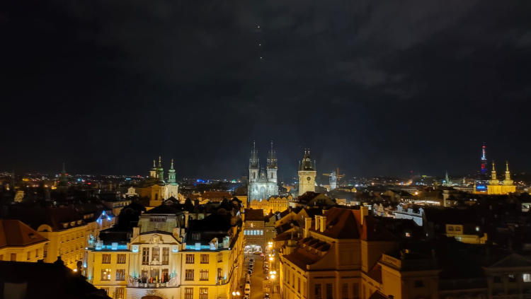 Después seguimos subiendo unas escaleras de caracol empinadísimas y, desde un altillo, el guía nos explicó el funcionamiento de la Torre astronómica. Unas cuantas escaleras más y pudimos disfrutar de las vistas desde lo alto de la torre. Al final nos alegramos de haber hecho la visita ya de noche, porque las vistas nocturnas de Praga eran espectaculares.