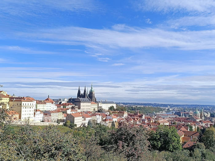 Queríamos empezar el día en el monte Petrín y, como lo teníamos cerca, decidimos subir andando en lugar de en funicular, que es lo más habitual. Claro que no sabíamos que las cuestas eran tan empinadas, pero disfrutamos del paseo y de un día precioso. Por si no te apetece subir andando o vienes de más lejos, el funicular sale de la estación Ujezd.