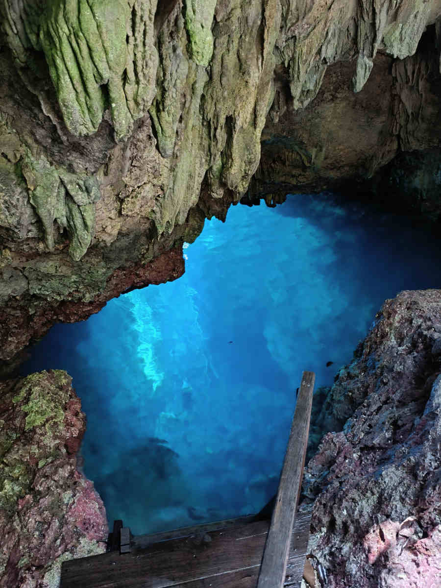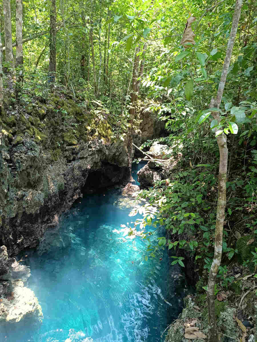 Después nos fuimos al Blue Hole, un agujero en medio de las formaciones de coral con agua de un increíble color azul intenso. Hay que pagar una entrada de 50.000 IDR si eres turista, los locales pagan algo menos: 30.000 IDR. El agua está algo fresquita, no como la del mar, que ronda entre los 27 y los 30 grados de media, pero acostumbrados al agua del Cantábrico no nos costó demasiado entrar. La visibilidad es impresionante, sobre todo en las zonas más profundas del agujero. Después del chapuzón fuimos hasta un embarcadero, rodeado de agua clara, donde no había absolutamente nadie y se respiraba paz y tranquilidad. Aprovechamos para secarnos al sol y comer ahí nuestros sándwiches, que nos habían preparado para llevar en la guesthouse.